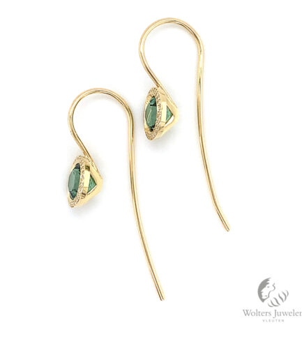 Of u nu wilt stralen met een groene Toermalijn of een blauwe Topaas, de eenvoud in het ontwerp van onze Dish-sieraden zet de edelsteen centraal. Voor de drager maken we de zetting open, zodat u ook zelf kunt genieten van de pracht van uw juweel. Voor extra schittering voegen we een pavélijn van diamant toe.