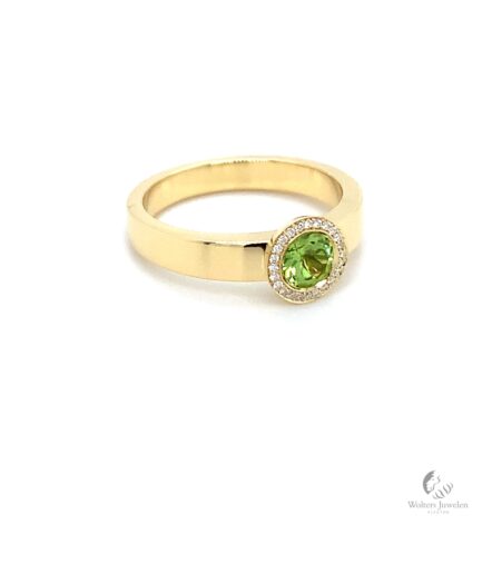 De hanger is gemaakt in het 14 karaat geelgoud met Peridoot en briljant geslepen diamanten.
