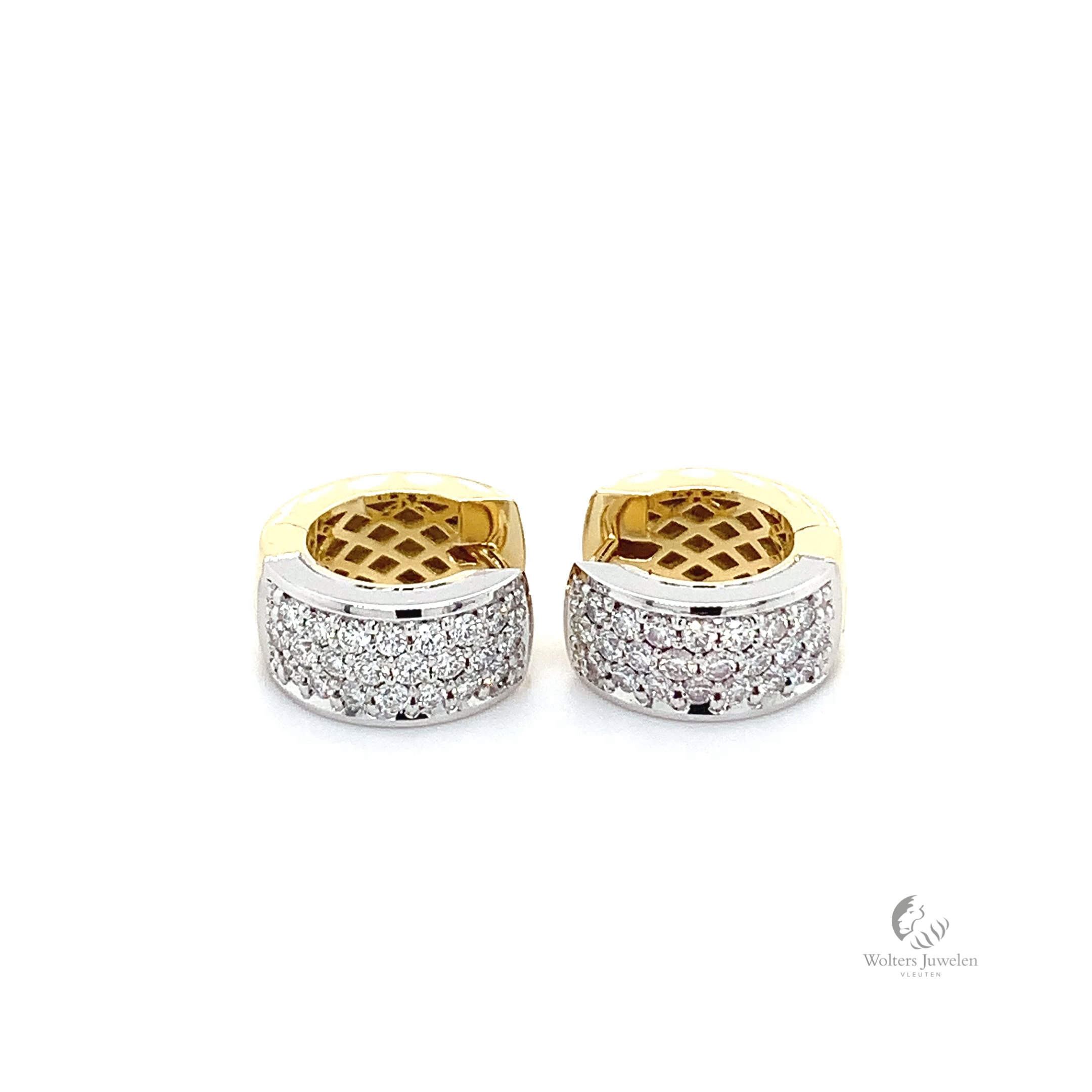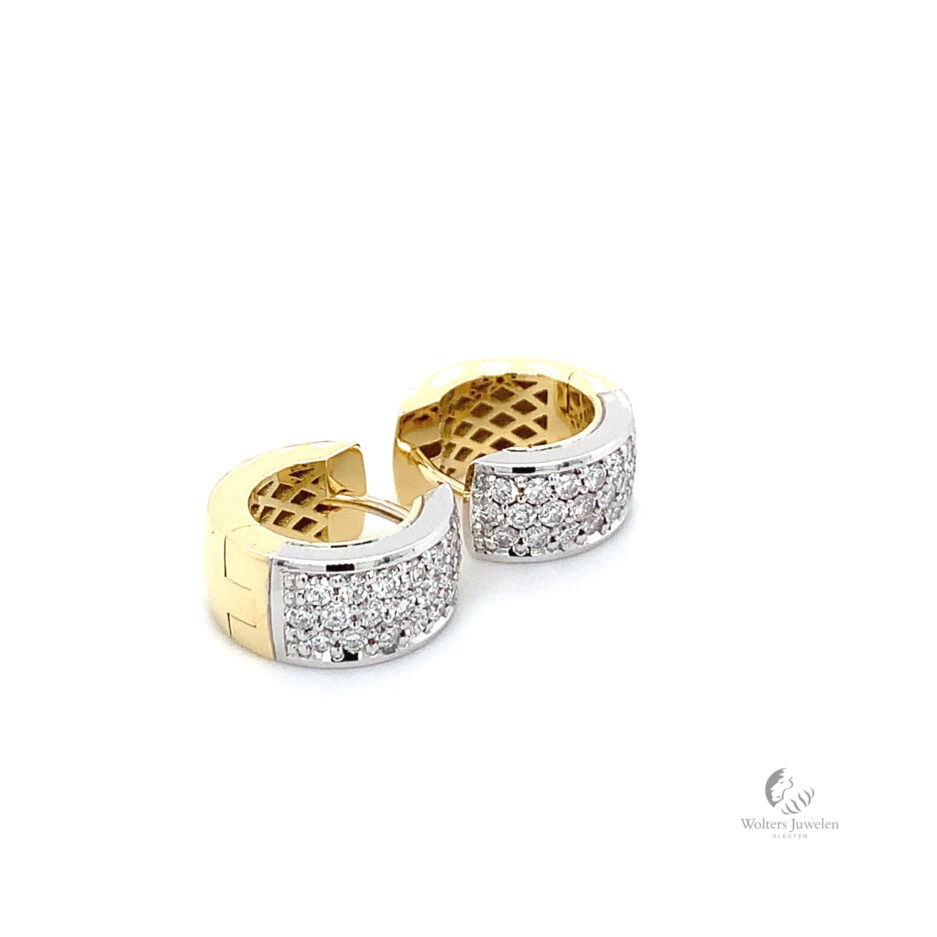Het zijn unieke oorringen die gemaakt zijn in 18 karaat geel en witgoud met briljant geslepen Diamant.