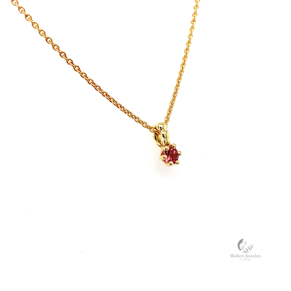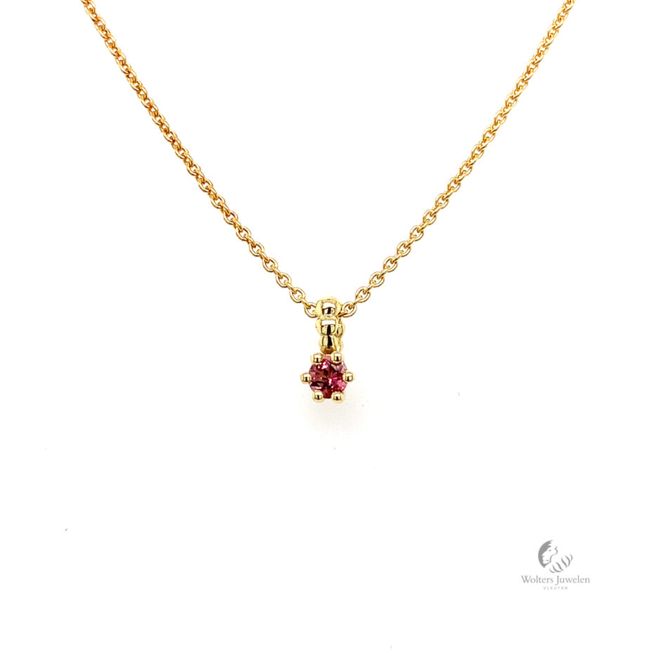 De hanger is vervaardigd in 18 karaat geelgoud met rond facet geslepen Toermalijn.