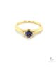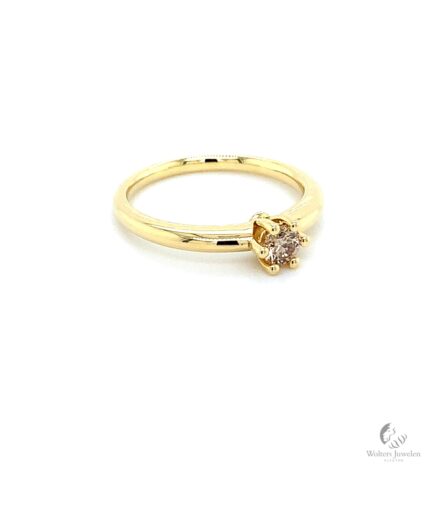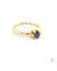 De ring is gemaakt in 18 karaat geelgoud met een rond facet geslepen Spinel.
