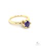 De ring is gemaakt in 18 karaat geelgoud met een rond facet geslepen Tanzaniet.