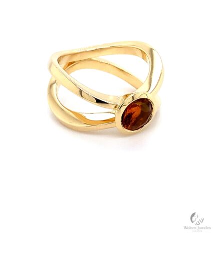 • Deze bijzondere ring uit de Dish-collectie van Wolters Juwelen in Vleuten heeft een prachtige citrien als stralend middelpunt, omlijst door fonkelende diamanten. Het warme 18-karaat geelgoud maakt de ring elegant en verfijnd, en geeft elke drager een subtiele, luxe uitstraling. Een sieraad met karakter en verfijning, ontworpen om blijvend indruk te maken.